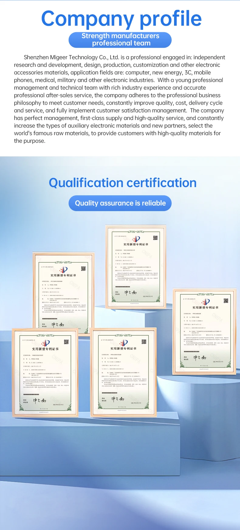 Shenzhen Migeer Technology Co., Ltd. is a professional custom 3C auxiliary electronic materials, waterproof and breathable membranes, South Korea Ildong foam, 3M double-sided tape, yarn mesh, acoustic mesh, conductive adhesive, absorbing materials, thermal conductive silicone, application scenarios: mobile phones, computers, 3C digital electronics, smart wear, headphones, audio, recorders, new energy vehicles, keyboards, and other electronic products consumer industry, we are a high-end products from refined products to high-end products, but also an elite technical backbone.